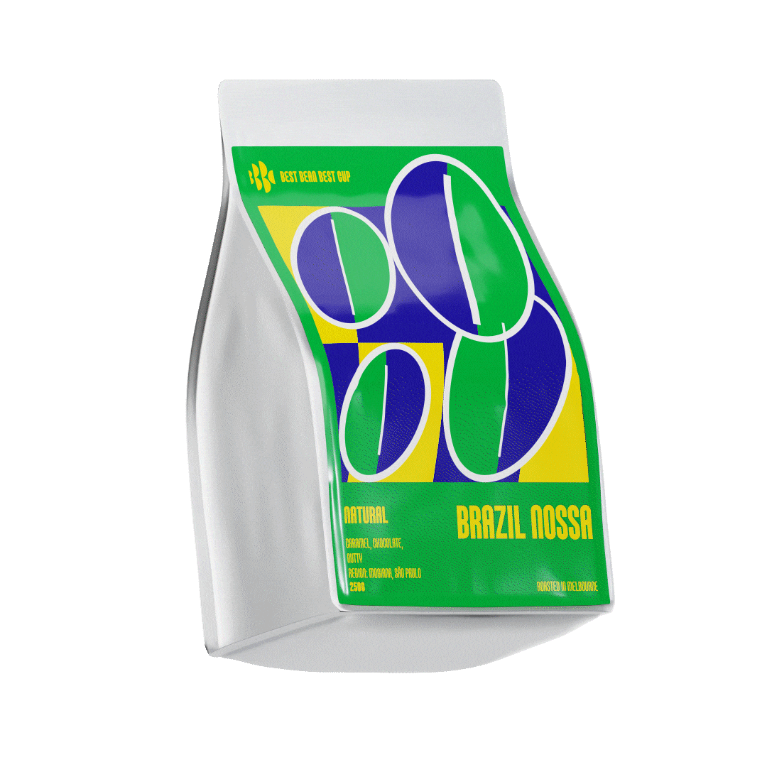 Grown in Vale da Grama, São Sebastião da Grama (Mogiana, São Paulo), high in Brazil’s Serra da Mantiqueira above 1,000m. Naturally processed and dried as whole cherry for 20–25 days, this coffee is smooth and sweet with flavours of caramel, chocolate, and a nutty finish—perfect for espresso and milk-based coffees.